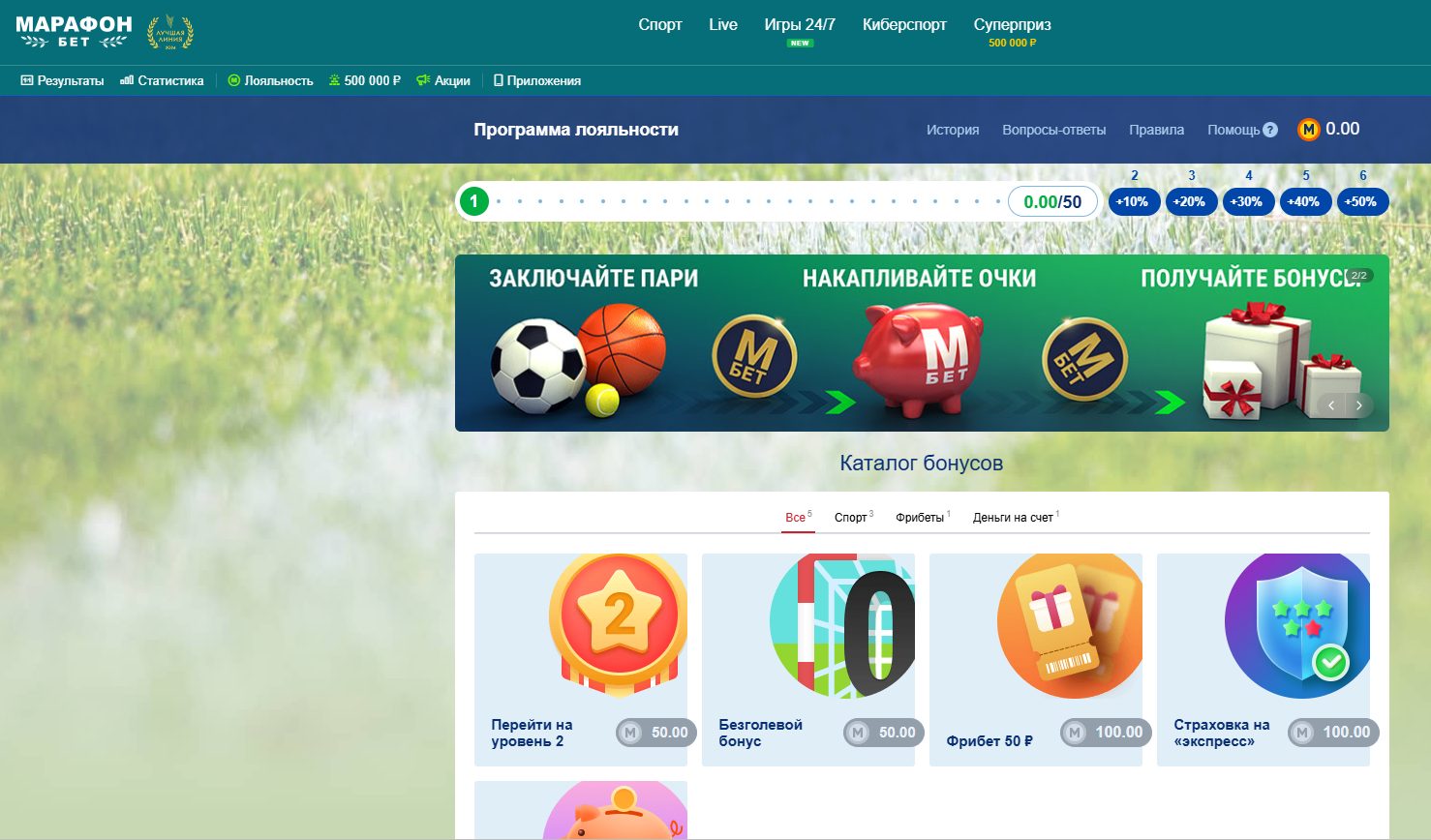 Программа лояльности доступна для всех пользователей, которые зарегистрировались на официальном сайте или в приложении «Марафон». Чтобы стать участником, достаточно сделать ставку на спорт или просто зайти на страницу программы лояльности на сайте. С этого момента вы автоматически становитесь участником.